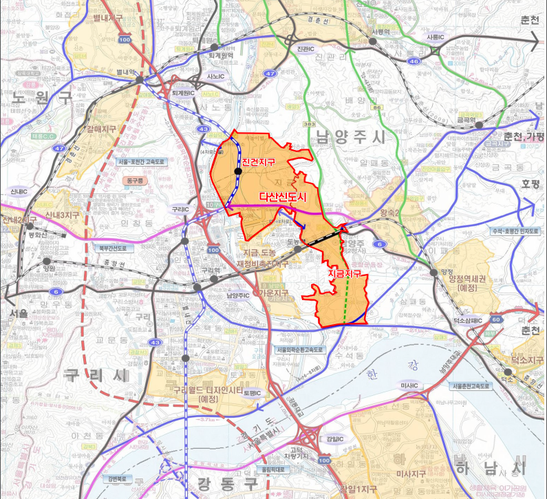 다산신도시는 남양주시 다산동 일원 약 475만㎡ 부지에 조성된 신도시로, 진건 및 지금지구로 구성된다. 사업 초기 열악한 환경 속에서도 다른 택지지구보다 빠르게 15년 만에 성공적으로 완성했으며, 현재 인구 약 10만명이 거주하는 안정적인 도시로 탈바꿈했다.